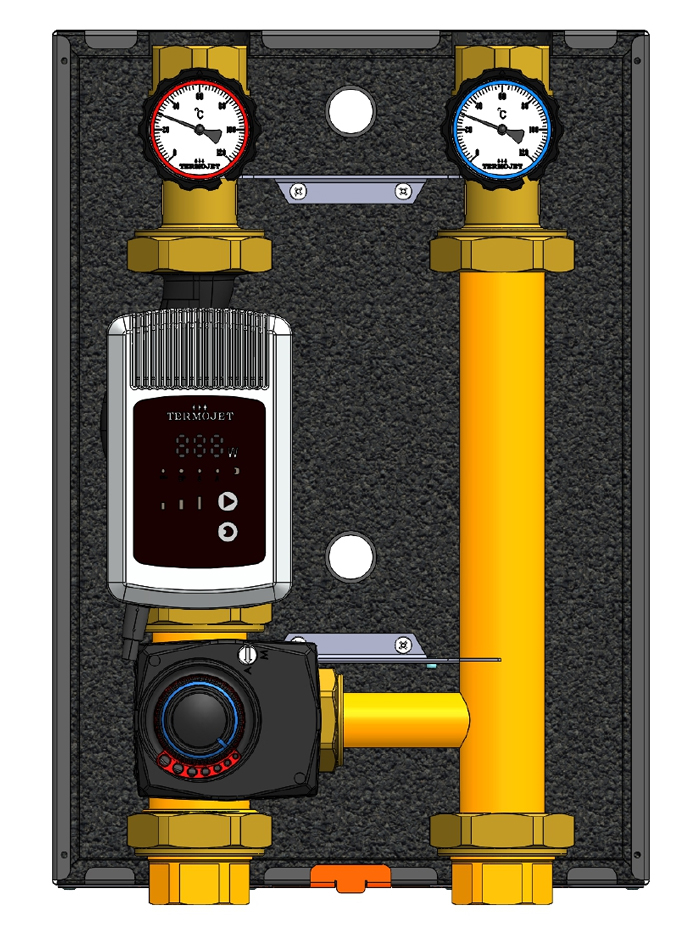 Насосная группа НГ-52 со смешивающим узлом используется для контуров, требующих управления температурой теплоносителя при наличии автоматики управления котельной.