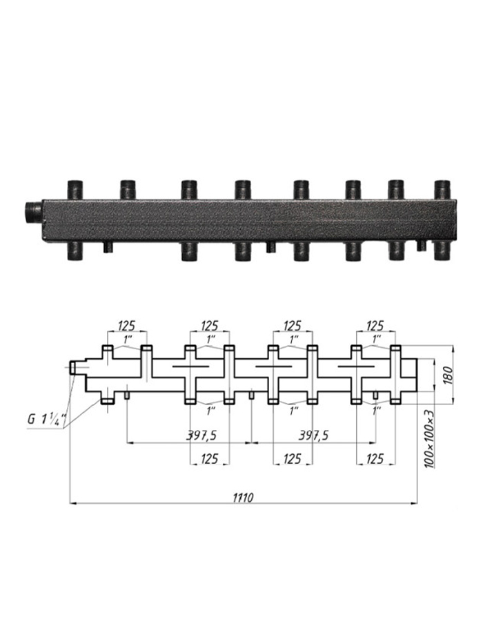 К71ВН.125(100) Коллектор в теплоизоляции 4 вверх + 3 вниз TERMOJET – однобалочный коллектор для топочных до 72 кВт, используется в системах отопления, в которых необходимо распределить теплоноситель на несколько потребителей тепла с разными параметрами.
