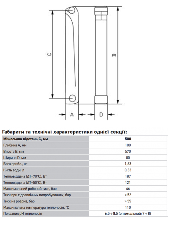 Показатель рН теплоносителя | 6,5 ÷ 8,5 (оптимальний: 7 ÷ 8) |
