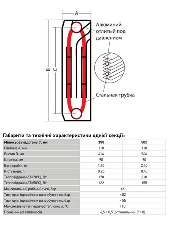 Биметаллический радиатор, отлитый под давлением, состоит из отдельных элементов – секций, соединенных между собой при помощи ниппелей. Герметичность в местах соединения секций обеспечивается уплотнительными прокладками. Вертикальная вкладка в виде двойной стальной трубки, повышенная толщина втулок и высокое качество специального алюминиевого сплава гарантируют исключительные эксплуатационные характеристики. Окраска производится методом анафореза, с заключительной фазой в виде эпоксидно-полиэфирного распыления. В результате радиатор приобретает безупречное покрытие белого цвета RAL 9016. Краска наносится на всю поверхность радиаторов, как с лицевой и тыльной сторон, так и с торцов – между оребрением. Производственный цикл завершается упаковкой. Каждый радиатор покрывается полиэтиленовой герметичной пленкой и помещается в прочную картонную коробку.