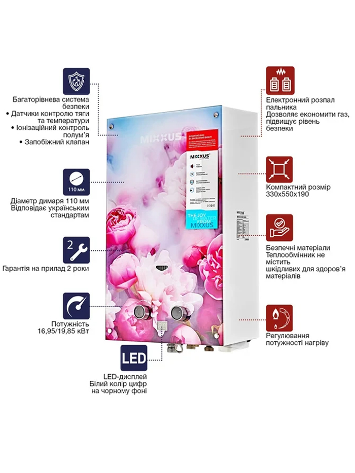 Газовая колонка MIXXUS GWH-0410 BASIC GLASS - это надежное и современное решение для вашего дома. Производительная, безопасная и компактная модель идеально подходит для обеспечения горячего водоснабжения в квартирах, частных домах, офисах и дачных коттеджах.