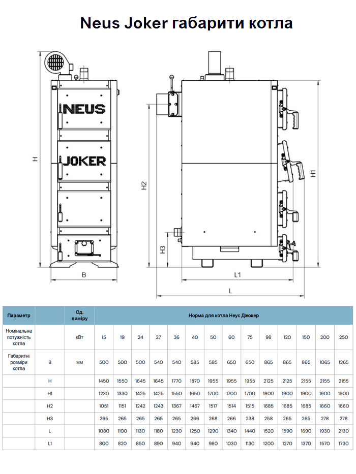 Параметр Ед. измерения Норма для котла Неус Джокер