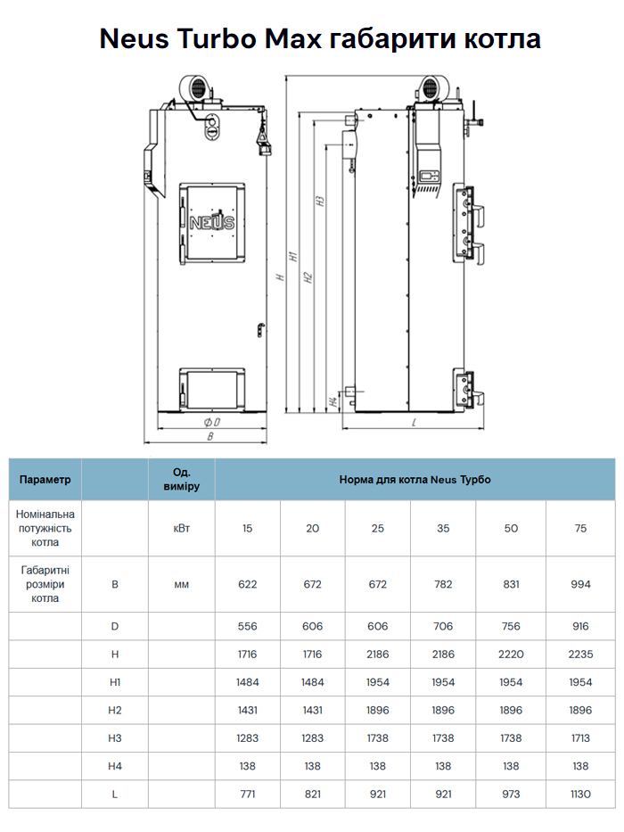 Норма для котла Неус Турбо