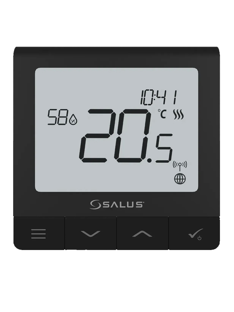 Универсальный термостат для установки в монтажную коробку (подрозетник) с встроенным датчиком влажности. Поддерживает два режима управления: беспроводной через SALUS Smart Home и проводной с помощью встроенного беспотенциального реле.