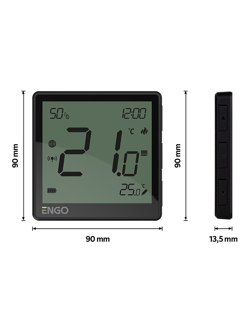 Engo ONE – это инновационный термостат со встроенным датчиком влажности, а также идеальное сочетание современности с точной работой и интересным дизайном. Прибор очень прост для монтажа и эксплуатации.