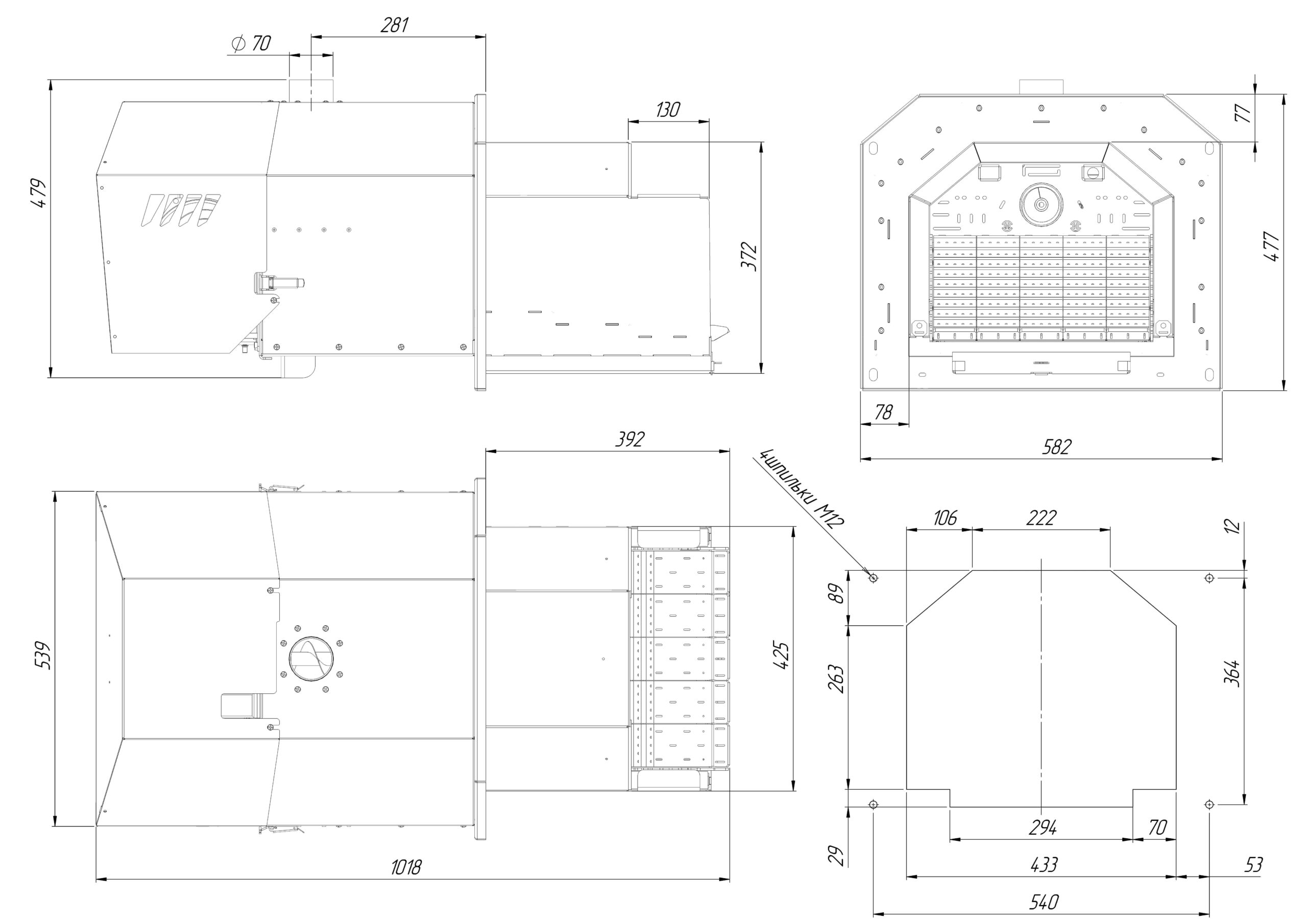 - Легкосъемный колосниковый блок – обеспечивает возможностью быстро и легко произвести профилактические работы, не прикасаясь к раскаленным частям котла.