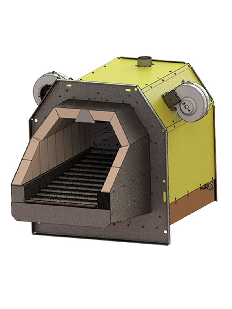 • Легкосъемный колосниковый блок. Позволяет быстро и легко произвести профилактические работы, не прикасаясь к раскаленным частям котла.