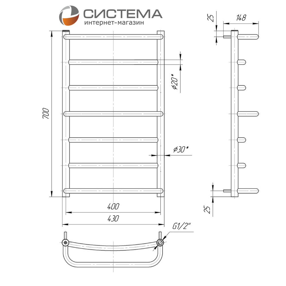 Полотенцесушитель водяной Mario Люкс  700х430/400 с доставкой. У нас ✔ низкая цена ✔ широкий ассортимент ✔ описание товара ✔ отзывы и ✔ гарантия качества ➠ 100% от интернет-магазина Система.
