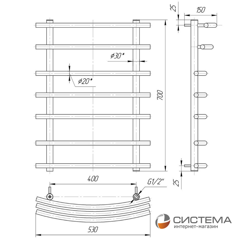 Полотенцесушитель водяной Марио 700х530/400 с доставкой. У нас ✔ низкая цена ✔ широкий ассортимент ✔ описание товара ✔ отзывы и ✔ гарантия качества ➠ 100% от интернет-магазина Система.