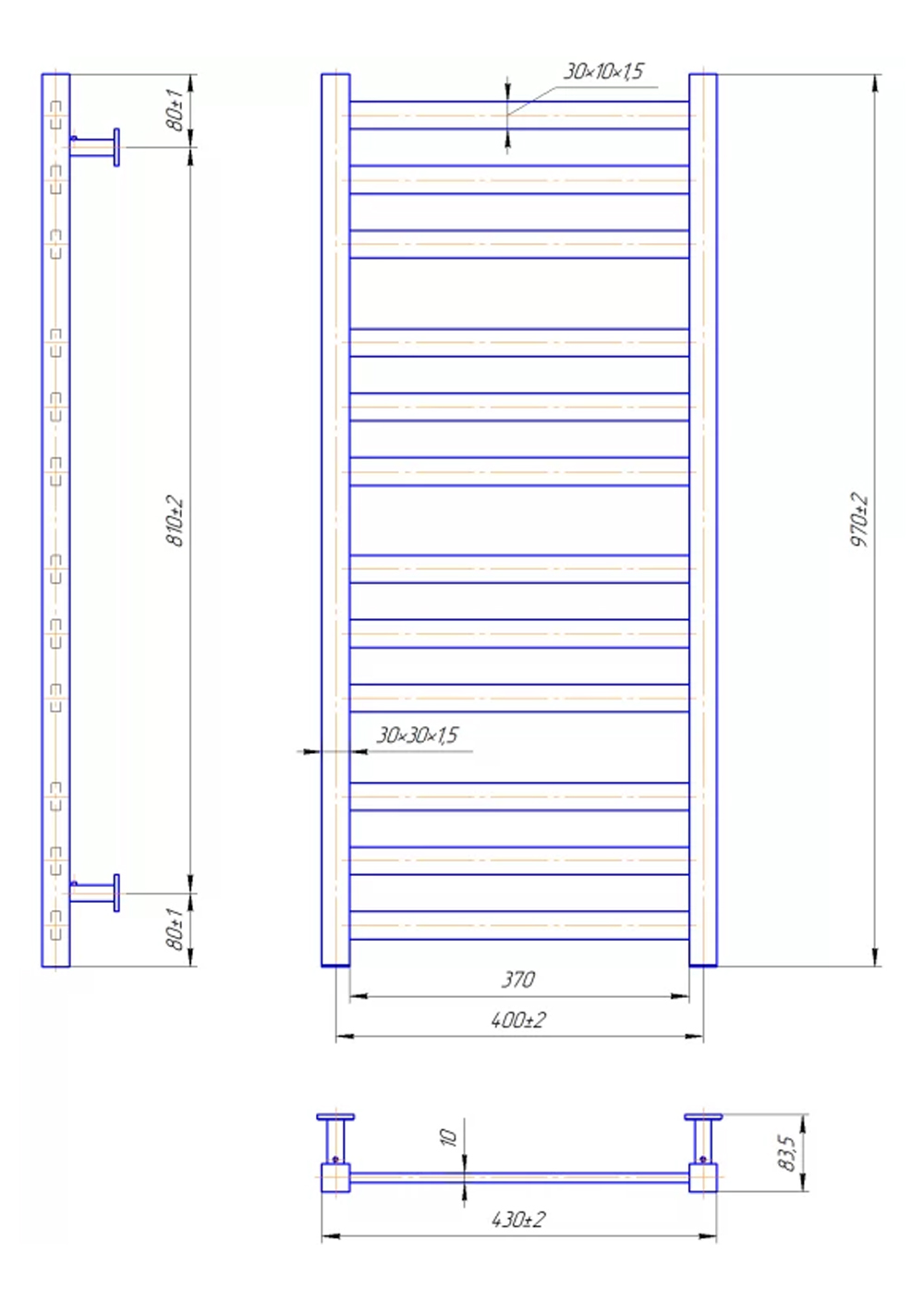 Полотенцесушитель из коллекции Чикаго выполнен в виде классической стремянки из трубы с квадратным сечением. Конструкция состоит из 9 ребер плоской формы, сгруппированных в три секции. Такой полотенцесушитель быстро высушит одежду, создаст комфортную температуру в помещении, избавит от запотевших зеркал и грибка на стенах, а также станет настоящим украшением ванной комнаты.