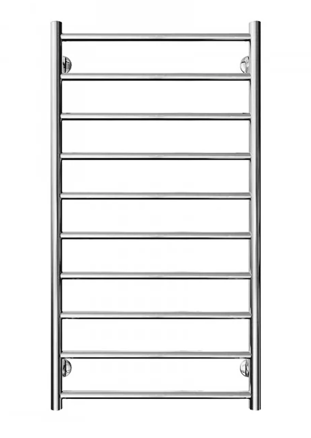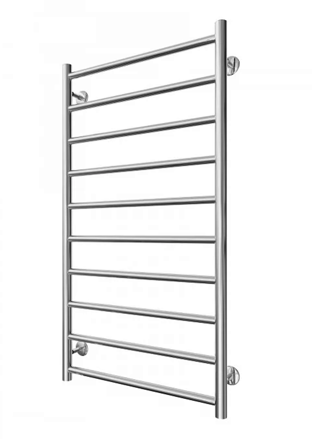 Mario Флет - это классическая водяная «лесенка» из нержавеющей стали, главная особенность которой — абсолютно плоский фасад. В отличие от моделей с дугообразными ребрами, все перекладины здесь расположены в одной плоскости с вертикальными стойками. Она отличается строгим минималистичным дизайном, что делает её подходящей для интерьеров в стиле хай-тек или модерн.