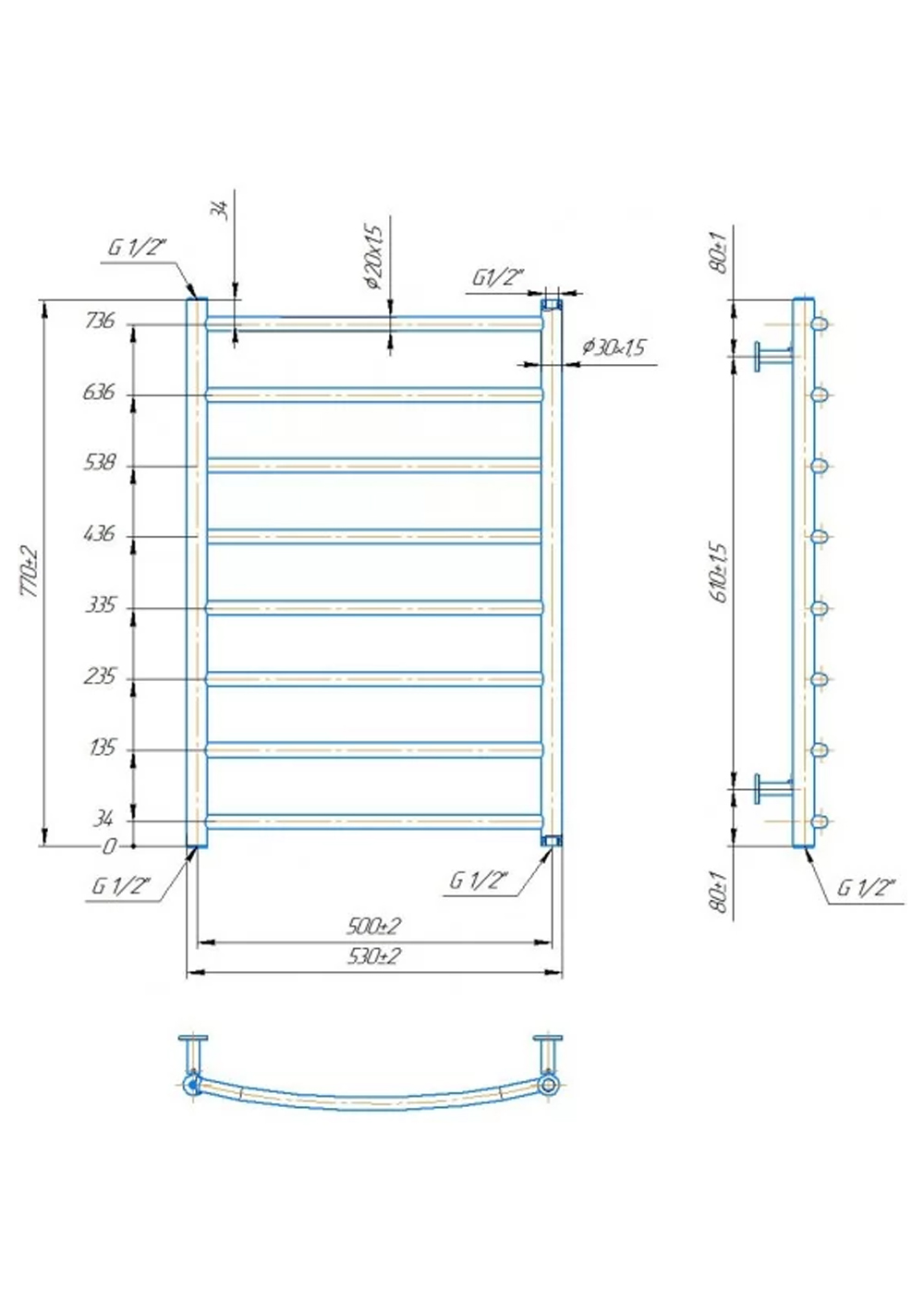 5. Полотенцесушитель Mario INOX Классик 770х530/500 белый мат