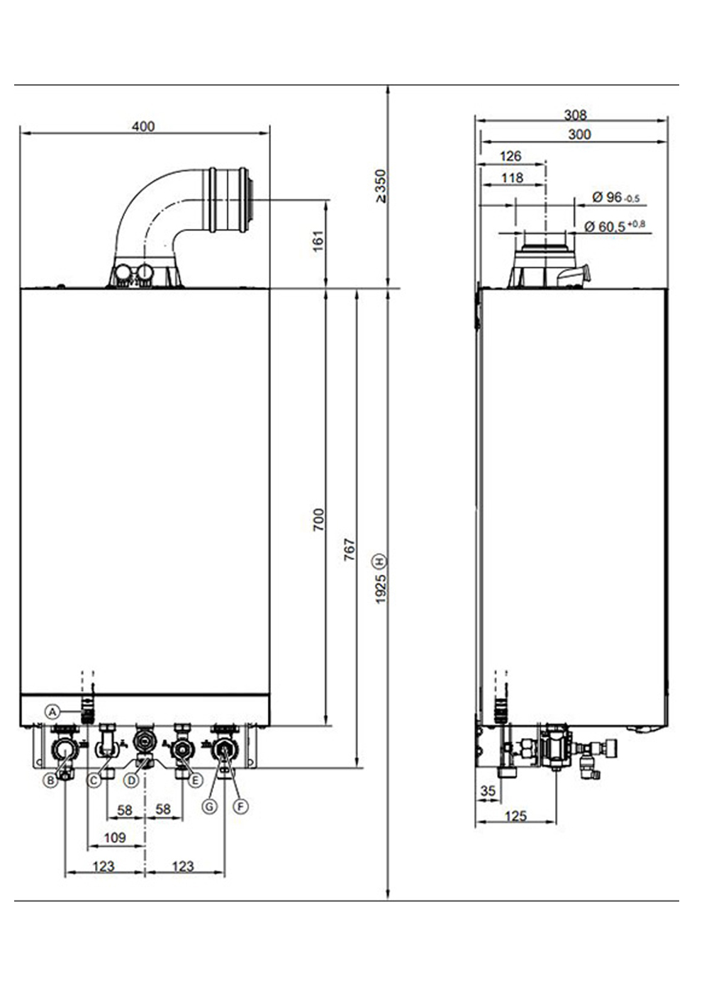 Диаметр коаксиального дымохода 60/100 мм