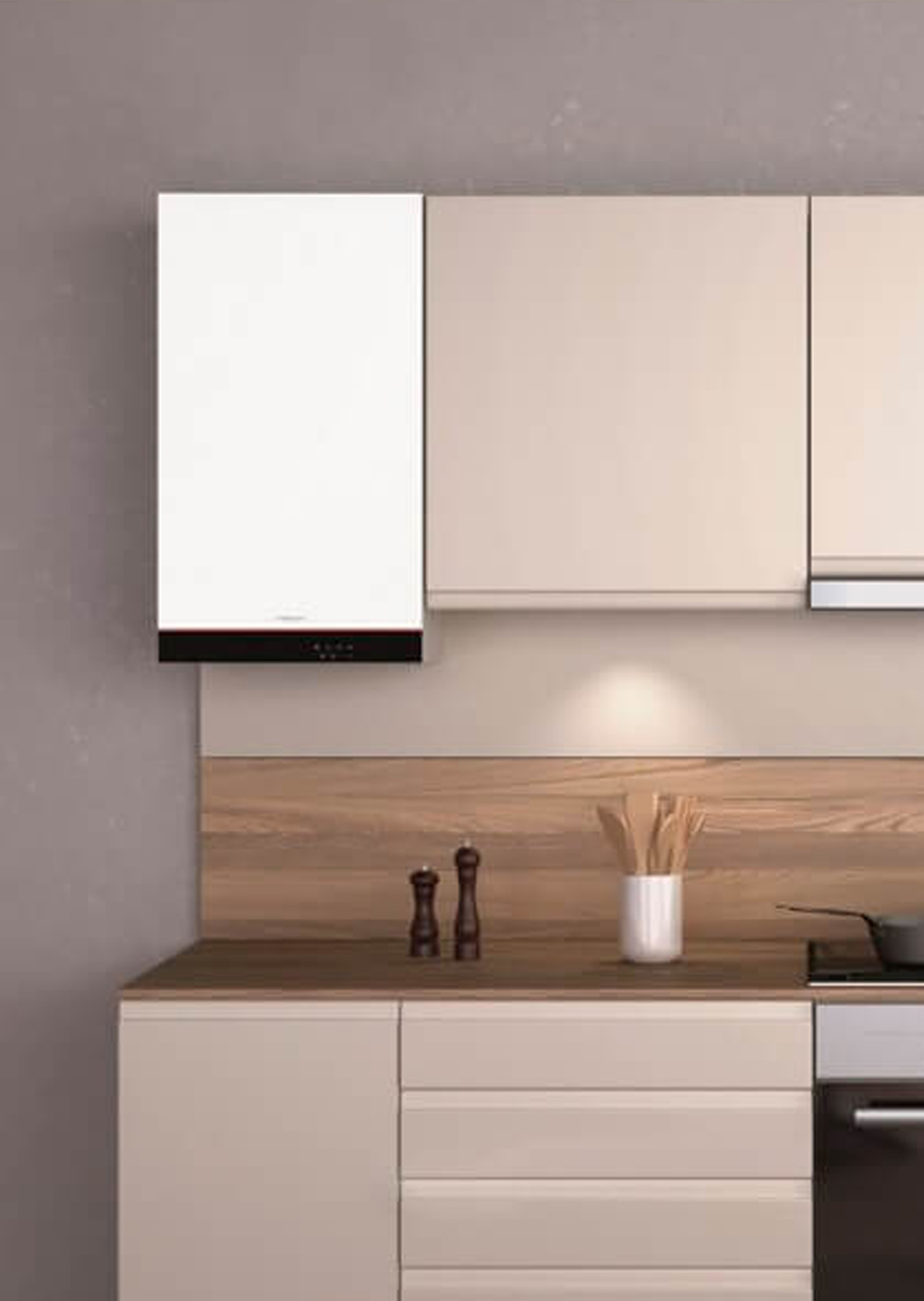 • Компактность и эстетика: Глубина всего 300 мм и современный белый матовый корпус позволяют вписать котел в любой интерьер.