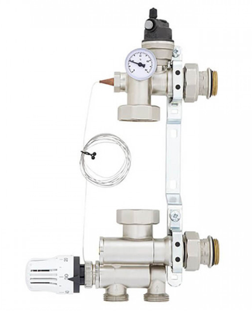 Смешивающий узел JL (JL15196) предназначен для регулировки температуры теплоносителя в системах водяного теплого пола. Он обеспечивает смешение горячей воды с подачи и охлажденной воды с обратной линии, что позволяет поддерживать безопасную и комфортную температуру пола.