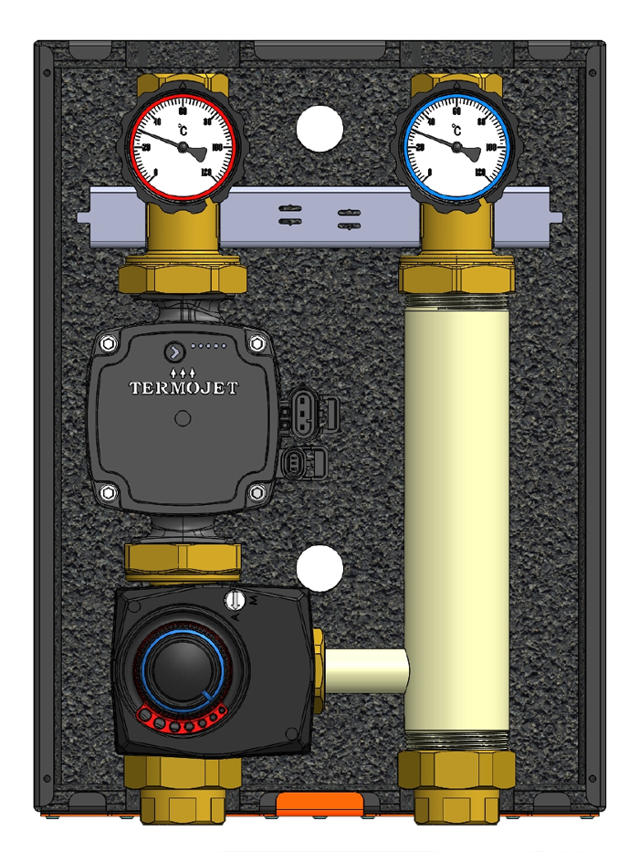 Насосна група НГ-48 зі змішувальним вузлом використовується для контурів, що потребують керування температурою теплоносія при наявності автоматики керування котельнею. Наприклад: