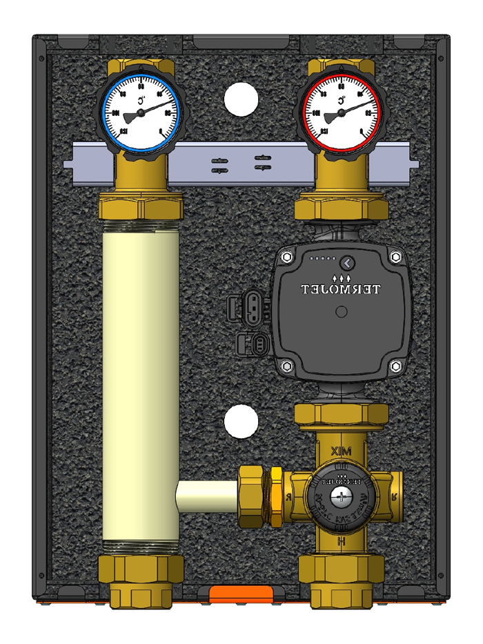 Насосна група НГ-46 з термостатичним краном використовується для контурів , що потребують керування температурою теплоносія без автоматики керування котельною. Наприклад: