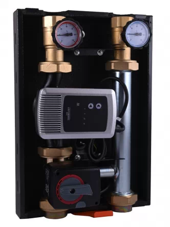Насосна група НГ-52 зі змішуючим вузлом використовується для контурів, що потребують керування температурою теплоносія при наявності автоматики керування котельною Наприклад: