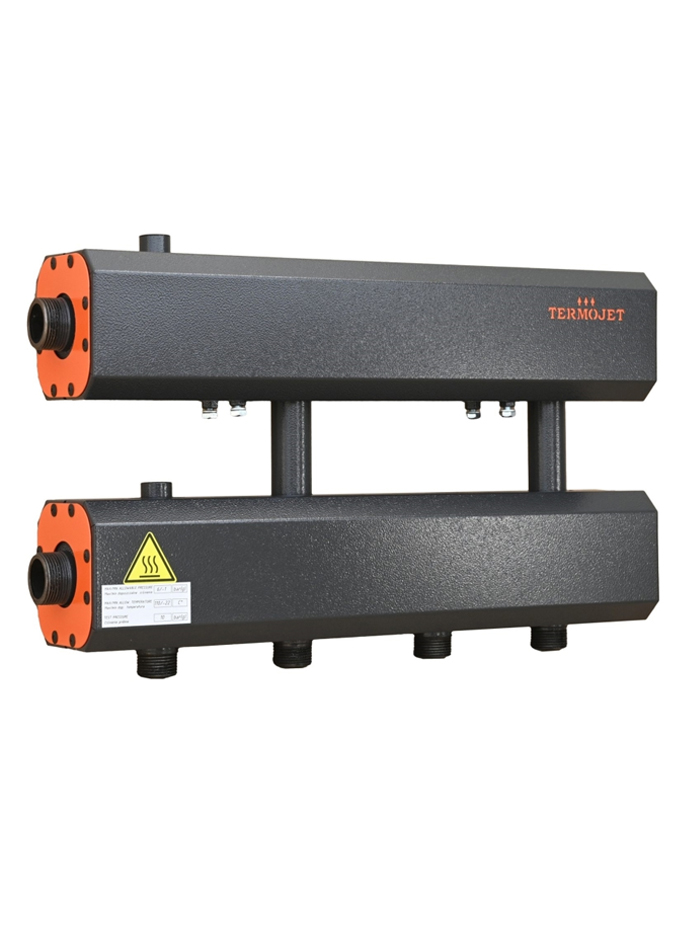 К22Н.150(300) Колектор в теплоізоляції 2 вниз +1 вбік TERMOJET - колектор для топкових до 175 кВт, використовується в системах опалення, в яких необхідно розподілити теплоносій на кілька споживачів тепла з різними параметрами.