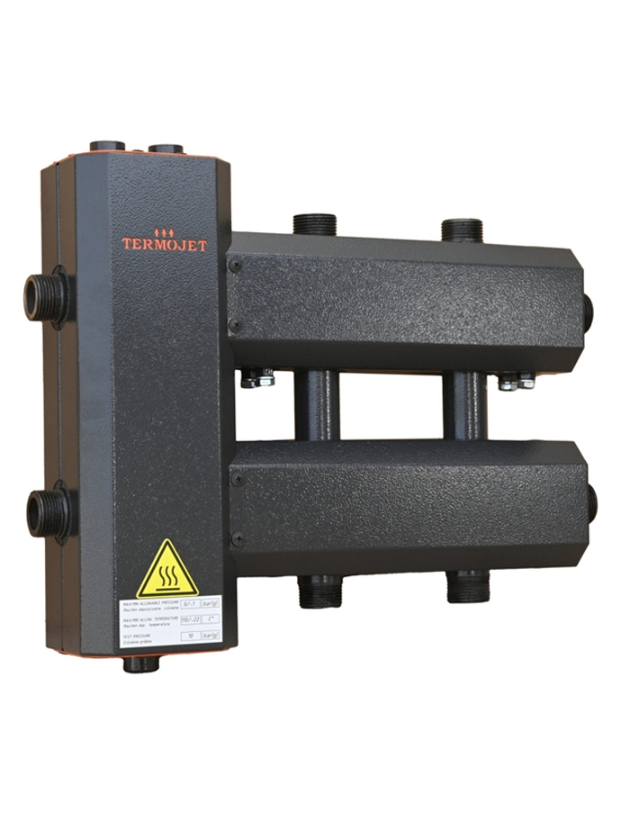 КГС22ВН.125(150) Колектор в теплоізоляції 1 вгору, 1 вниз + 1 боковий Mini з гідрострілкою TERMOJET - колектор для топкових до 30 кВт, використовується в системах опалення, в яких необхідно розподілити теплоносій на кілька споживачів тепла з різними параметрами.