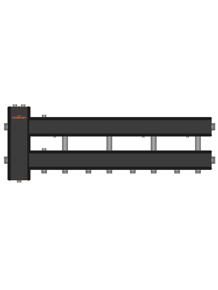 КГС42Н.125(200) Колектор з гідравлічним розділювачем в теплоізоляції 4 вниз + 1 вбік TERMOJET - колектор для топкових до 60 кВт, використовується в системах опалення, в яких необхідно розподілити теплоносій на кілька споживачів тепла з різними параметрами.