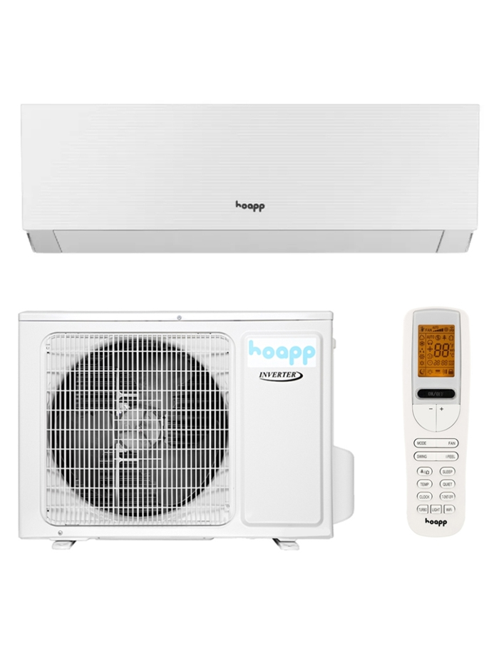 Кондиціонер Hoapp серії Design Inverter Wi-fi обладнаний інноваційним інверторним компресором останнього покоління, працює плавно і практично безшумно, а також має вдосконалений дизайн внутрішнього блоку. У даній серії реалізовані всі передові функції, кондиціонери здатні працювати не тільки на охолодження, але і на обігрів при температурах до -25 °C, а також в режимах осушення і вентиляції.