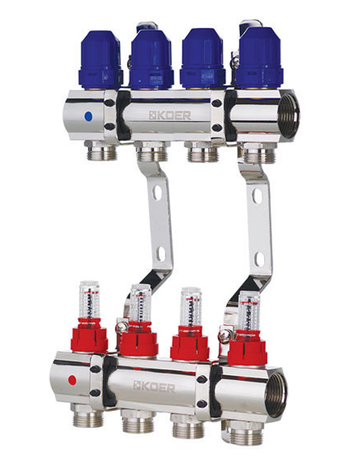 6. Колектор із витратомірами KOER KR.1110-04 - 1”x4 WAYS без євроконусів