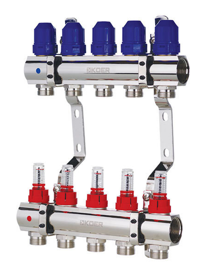 6. Колектор із витратомірами KOER KR.1110-05 - 1”x5 WAYS без євроконусів