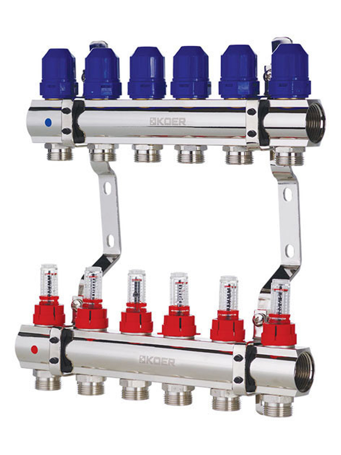 6. Колектор із витратомірами KOER KR.1110-06 - 1”x6 WAYS без євроконусів