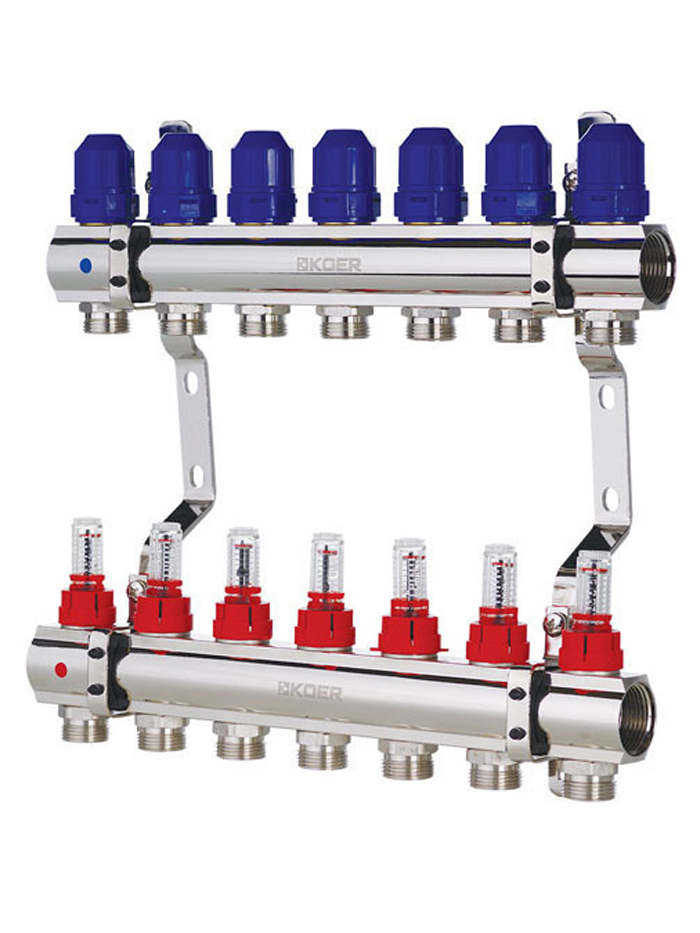 6. Колектор із витратомірами KOER KR.1110-07 - 1”x7 WAYS без євроконусів