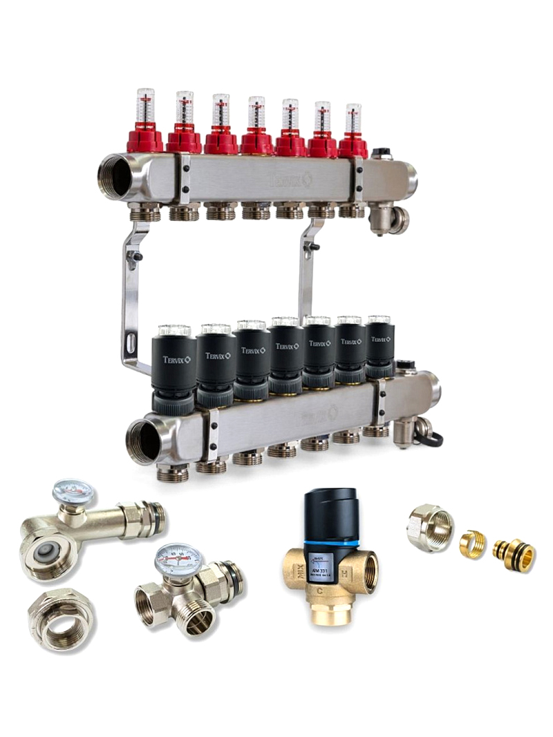 1. Змішувальний вузол 1" для теплої підлоги Tervix Pro Line Mixset без насоса