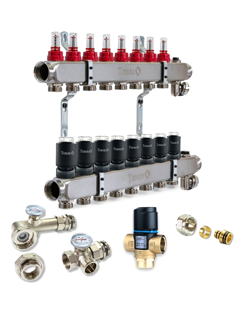 1. Змішувальний вузол 1" для теплої підлоги Tervix Pro Line Mixset без насоса