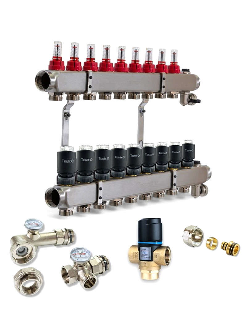 1. Змішувальний вузол 1" для теплої підлоги Tervix Pro Line Mixset без насоса