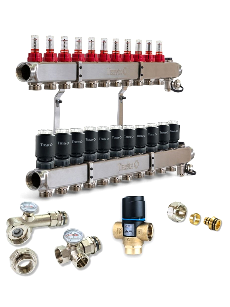 1. Змішувальний вузол 1" для теплої підлоги Tervix Pro Line Mixset без насоса