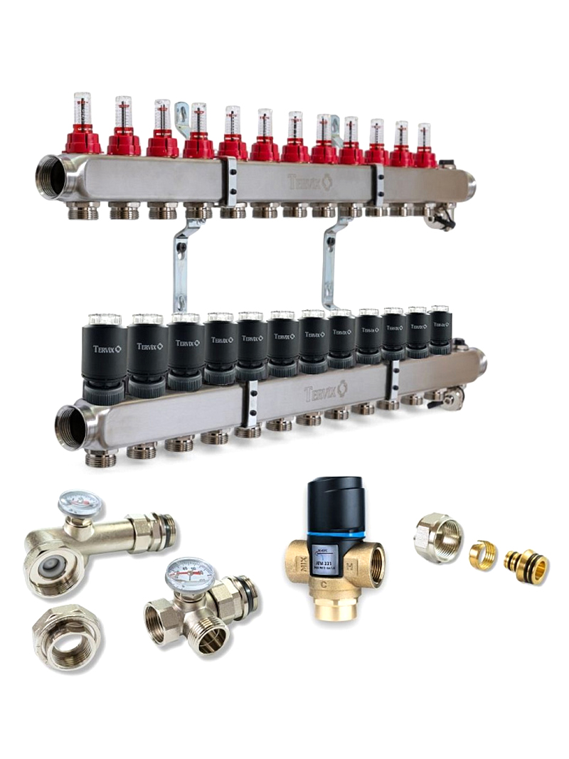 1. Змішувальний вузол 1" для теплої підлоги Tervix Pro Line Mixset без насоса