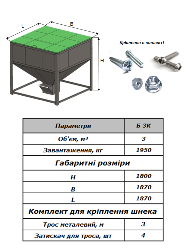 • Комплект постачання: бункер, металовироби, рем. комплект з фарбою, інструкція зі збирання.